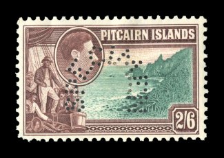 3347 ogS S.G. #1s-8s imageS.G. #1s-8s, 1940 1/2p to 2/6 King George VI, with perforated "Specimen" cplt., bright fresh colors, o.g., small h.r.'s, 1p and 2/6 with tiny thin spots, otherwise fine-very fine; a rare and seldom offered specimen set (Scott #1S-8S). (imagea) (Image) £1,100