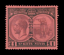 3352 ngS S.G. #119s-85s imageS.G. #119s-85s, 1910-13 1/2p-£1 Double Heads, with overprinted "Specimen" cplt., strong rich colors throughout although accompanying certificates inexplicably describe six as being "discolored", unused (no gum), 3p and 7/6 with shallow thin, fine-very fine; overall an attractive set of specimens from this popular issue; each with a 1978 RPS certificate (Scott #101S-18S). (imagea) (Image) £3,500