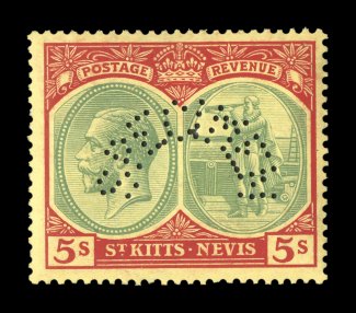 3355 ogS S.G. #37s-47bs imageS.G. #37s-47bs, 1921-29 1/2p to 5/- King George V, with overprinted or perforated "Specimen cplt., including the 1p Red both perforated and overprinted, bright colors, o.g., lightly hinged, very fine (Scott #37S-51S). (Image) £445