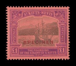 3353 ogS S.G. #186s-249s imageS.G. #186s-249s, 1913-22 1/2p-£1 Admirals, with overprinted "Specimen" cplt., strong rich colors throughout, o.g., lightly hinged except for the 1 1/2p which has a large adherence on gum (paper also slightly toned on this value), a fresh and very fine set of Admiral specimens, which are offered with less frequency than the higher cataloging Double Head specimens (Scott #119S-38S). (imagea) (imageb) (Image) £2,250