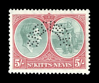 3357 ogS S.G. #68s-77s imageS.G. #68s-77s, 1938-50 1/2p to 5/- King George VI, with perforated "Specimen" cplt., brilliantly fresh, o.g., lightly hinged, very fine (Scott #79S-88S). (Image) £200