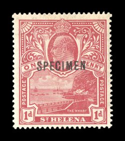 3360 ogS S.G. # 60 footnote imageS.G. #60 footnote, 1911 1p Red, with overprinted "Specimen", an unissued stamp that only exists with the specimen overprint, attractive color, o.g., minor h.r., very fine. (Image) £325