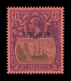 3363 ogS S.G. #92s-96s imageS.G. #92s-96s, 1922 4p-£1 Seal of the Colony, with overprinted "Specimen" cplt., rich colors, o.g., 1/6 with toning mostly on the reverse, the £1 value is choice and lightly hinged, fine-very fine (Scott #95S-99S). (Image) £500
