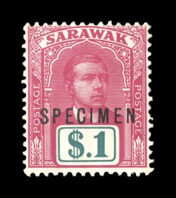 3378 ogS S.G. #76s-90s imageS.G. #76s-90s, 1928-29 1c-$1.00 Charles Brooke, with overprinted or perforated "Specimen" cplt., strong rich colors, o.g., 20c with small thin spot, fine-very fine (Scott #79S-93S). (Image) £275