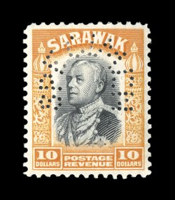 3380 ogS S.G. #106s-25s imageS.G. #106s-25s, 1924-41 1c-$10.00 Charles Brooke, with perforated "Specimen" cplt., o.g., a few values with light edge toning, generally fine-very fine (Scott #109S-34S). (Image) £550