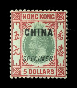 3021 ogS S.G. #12s-17s imageS.G. #12s-17s, 1917 50c-$10.00 King George V, with handstamped "Specimen" cplt., strong colors, o.g. (50c small part o.g.), some h.r.'s, 50c with surface scrape, $1.00 with faint toning on reverse, fine-very fine; a rarely offered specimen set from this popularly collected area (Scott #11S-16S). (imagea) (Image) £2,250