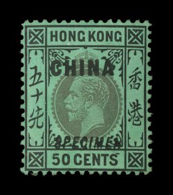 3022 ogS S.G. #26s imageS.G. #26s, 1922 50c Black on emerald, with handstamped "Specimen", deep colors, part o.g., very fine; this is the only value from the series to come with a specimen overprint (Scott #25S). (Image) £275