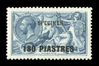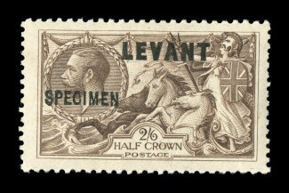 3028 ogS S.G. #L23s-24s imageS.G. #L23s-L24s, 1921 1/- and 2/6 "Levant" overprints, with overprinted "Specimen" cplt. set of the two values, o.g., lightly hinged, very fine (Scott #53S-54S). (Image) £205