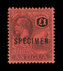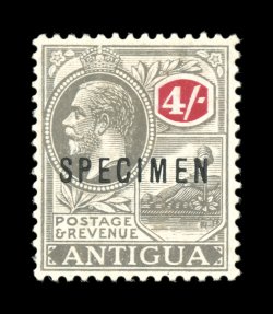 3032 ogS S.G. #62s-80s imageS.G. #62s-80s, 1921-1929 1/2p to 4/- King George V, wmk. multiple script CA, with overprinted or perforated "Specimen" cplt., bright and fresh, o.g., lightly hinged, very fine set (Scott #42S-57S). (Image) £350
