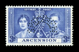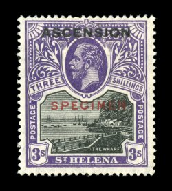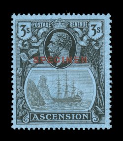 3035 ogS S.G. #1s-9s imageS.G. #1s-9s, 1922 1/2p to 3/- Ascension overprints, with overprinted "Specimen" cplt., bright colors, o.g., very fine; a scarce set (Scott #1S-9S). (Image) £700