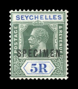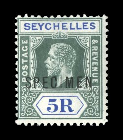 3382 ogS S.G. #82s-97s imageS.G. #82s-97s, 1917-22 2c-5R King George V, with overprinted "Specimen" cplt., the 45c being the broken "M" variety, o.g. except 3c no gum, fine-very fine (Scott #74S-89S). (Image) £300