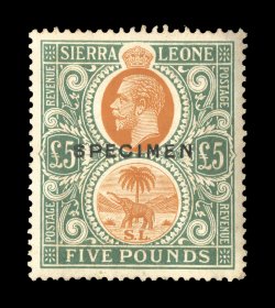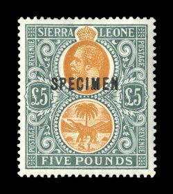 3400 ogS S.G. #3s-17s imageS.G. #3s-17s, 1913-24 1/2p-£1 King George V, with overprinted or handstamped "Specimen" cplt., bright colors, o.g. (first two part o.g.), most lightly hinged, fine-very fine; a rarely offered specimen set (Scott #2S-16S). (imagea) (Image) £1,300