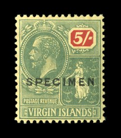 3445 ogS S.G. #86s-101s imageS.G. #86s-101s, 1922-28 1/2p to 5/- King George V, with overprinted or perforated "Specimen" cplt., generally well centered and fresh, o.g., some small h.r.'s, very fine (Scott #53S-66S). (Image) £275