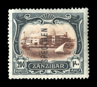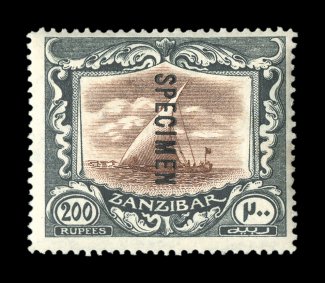 3449 ogS S.G. #246s-60gs imageS.G. #246s-60gs, 1913 1c-200R Sultan Kalif and Dhow, with overprinted "Specimen" cplt., lovely fresh colors, o.g., rupee values are lightly hinged, fine-very fine (Scott #120S-40S). (Image) £690