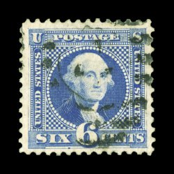 197 Ou 126 image#126, 6c Blue re-issue, an incredibly choice used example of a stamp that is far more rare used than mint, featuring exceptional centering within large margins, sumptuously rich color and a deeply etched impression on bright paper, very light and unobtrusive duplex postmark which proves its contemporaneous usage, extremely fine; only a tiny percentage of the 2,226 Six Cent Re-issues were ever used, and of these only a small handful exist in this premium condition; 2001 PF certificate and a 2005 PSE certificate (VF-XF 85; SMQ $3,300.00); ex-Hinrichs. (Image) $2,500.00