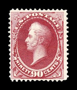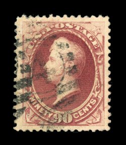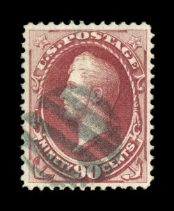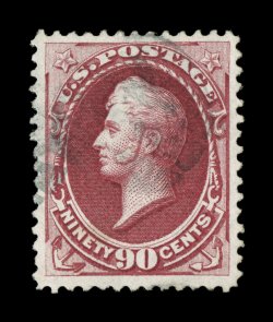 231 O 155 image#155, 90c Carmine, a highly select used example, being extraordinarily well centered within particularly large margins, deep vibrant color and an intense impression on crisp white paper, very lightly cancelled which is most unusual for this high value, extremely fine and choice; 1999 PF certificate. (Image) $350.00