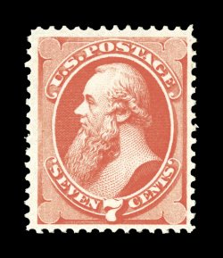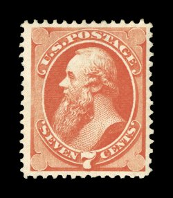 235 og 160 image#160, 7c Vermilion, a marvelous quality mint example of this very difficult stamp, possessing large and well balanced margins all around, gorgeous rich color and lovely detailed impression, especially clean full original gum, lightly hinged, extremely fine; a premium quality nineteenth century mint stamp that is seldom found so choice; 2006 PF certificate. (Image) $1,500.00