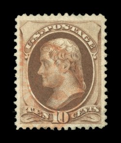 224 O 150 image#150, 10c Brown, pretty used single, quite well centered within large margins, bright luxuriant color, light strike of a red New York Foreign Mail postmark, extremely fine; 2002 PSE certificate; ex-Hinrichs. (Image) $34.00