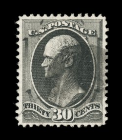 228 Ou 154 image#154, 30c Black, excellent centering, wonderfully fresh color and a clean impression on bright white paper, relatively light cork cancel, extremley fine; 2006 PF certificate (XF 90; SMQ $670.00). (Image) $275.00