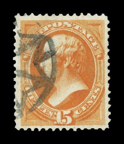 244 O 163 image#163, 15c Yellow orange, exceptionally well centered used single, unusually large margins, fresh bright color and excellent impression, portion of a black New York foreign mail cancel, extremely fine and handsome; 2005 PF certificate. (Image) $140.00