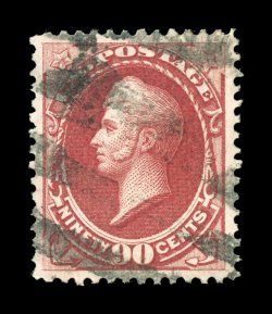 256 O 191 image#191, 90c Carmine, used, excellent centering within uncharacteristically large margins, strong rich color and a crisp detailed impression on bright white paper, light duplex cancel, extremely fine; 1990 PF certificate. (Image) $325.00