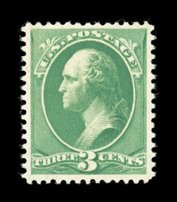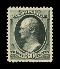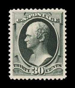 249 og 176 image#176, 30c Greenish black special printing, without gum as issued, an attractive example of this rare special printing, being exceptionally well centered, and though scissors separated, as the vast majority are found, it possesses virtually complete perforations all around, a seldom found feature of the approximately 45 to 50 examples that are thought to yet exist of the Thirty Cent Hard Paper Special Printing, intense color and prooflike impression, very fine; 1995 APS and 2004 PSE certificates. (Image) $15,000.00