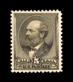 253 ogu 190 image#190, 30c Full black, an extraordinarily handsome and choice mint example, boasting lavishly large margins and being wonderfully well centered within those margins, sumptuously rich color and a strong detailed impression on fresh bright paper, full o.g., lightly hinged, extremely fine and rarely found in this highly select condition; 2000 PF certificate for a pair, this being the right stamp, and accompanied by 2001 and 2005 PSE certificates (latter grading XF 90; SMQ $2,200.00). (Image) $1,100.00