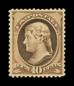 260 nh 209 image#209, 10c Brown, an extraordinarily fresh and choice mint single, featuring outstanding centering within uncommonly large margins, rich luxuriant color and a well incised impression, pristine o.g., n.h., extremely fine; actually a very scarce stamp in this premium never hinged quality; 1993 and 2004 PF certificates. (Image) $550.00