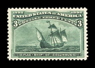 305 nh 232 image#232, 3c Columbian, extraordinarily well centered within particularly large margins, deep vibrant color and a sharp impression, flawless o.g., n.h., extremely fine; 1999 PF certificate. (Image) $150.00