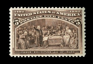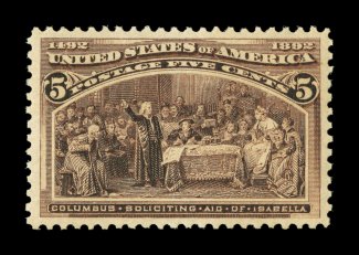 311 nh 234 image#234, 5c Columbian, marvelously well centered within large margins, sumptuously rich color and a particularly crisp impression on bright paper, pristine o.g., n.h., extremely fine. (Image) $250.00