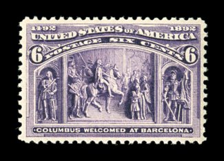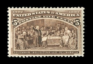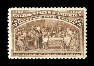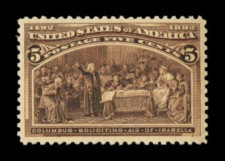 310 nh 234 image#234, 5c Columbian, exceptionally well centered within large margins, lovely rich color and a strong detailed impression, o.g., n.h., extremely fine; 2003 PF certificate. (Image) $250.00