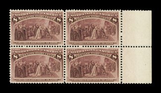 316 nhbl 236 image#236, 8c Columbian, right sheet-margin mint block of four, exceptionally fresh and very well centered, intense color and impression, immaculate o.g., n.h., very fine and choice block; catalog value is for four n.h. singles. (Image) $800.00+