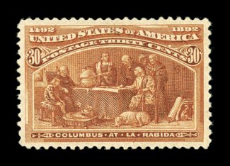 321 og 239 image#239, 30c Columbian, especially well centered within uncommonly large margins, rich color and a strong impression, o.g., lightly hinged, extremely fine; 1991 PF certificate. (Image) $300.00