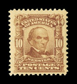 462 nh 307 image#307, 10c Pale red brown, nicely centered within incredibly large margins, deep color and a highly detailed impression, o.g., n.h., choice very fine; 2002 PF certificate. (Image) $165.00