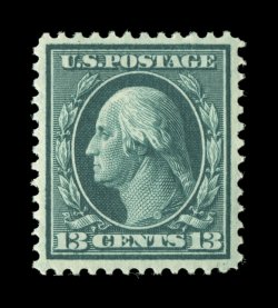521 nhu 339 image#339, 13c Blue green, attractive mint single with beautifully balanced and unusually wide margins, deep luxuriant color and a crisp impression, o.g., n.h., extremely fine; an especially fresh stamp; 1990 and 2006 PF certificates (the latter graded XF 90; SMQ $185.00). (Image) $95.00