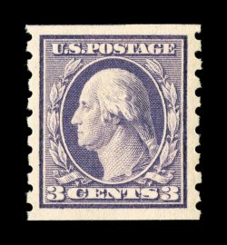 595 nh 394 image#394, 3c Deep violet coil, perf. 8 1/2 vert., choice mint single, very well centered within remarkably large margins, lovely fresh color on brilliantly white paper, o.g., n.h., extremely fine; 1989 PSE and 2005 PF certificates. (Image) $130.00