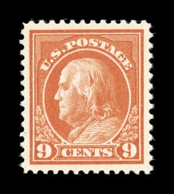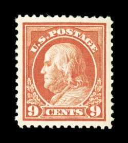 638 nh 415 image#415, 9c Salmon red, extraordinarily well centered and margined, brilliantly fresh color and paper, o.g., n.h., extremely fine; 1997 PF certificate. (Image) $120.00