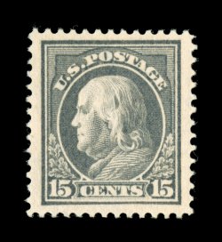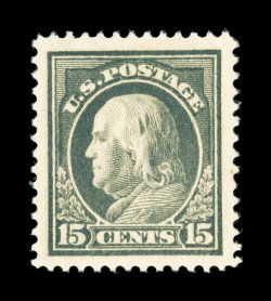 642 ogu 418 image#418, 15c Gray, especially well centered within extravagantly large margins, deep color and a strong detailed impression, o.g., l.h., extremely fine; 2006 PSE certificate (XF-Superb 95; SMQ $290.00). (Image) $85.00