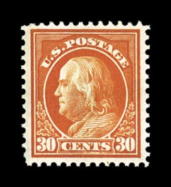 644 nh 420 image#420, 30c Orange red, lovely mint single, exceptionally well centered within uncharacteristically large margins, sumptuously rich color and a deeply etched impression on crisp paper, o.g., n.h., extremely fine; 2000 PF certificate. (Image) $270.00