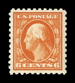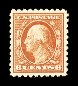654 nhu 429 image#429, 6c Red orange, a gorgeous mint single, featuring glorious bright color and an excellent clarity of impression on crisp white paper, plus it is wonderfully well centered within large margins, flawless o.g., n.h., an extremely fine gem; encapsulated PSE certificate (XF-Superb 95; SMQ $1,250.00). (Image) $115.00