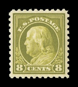 657 ogu 431 image#431, 8c Pale olive green, exceedingly well centered and margined, wonderfully bright and fresh, o.g., l.h., extremely fine; encapsulate PSE certificate (XF-Superb 95; SMQ $140.00). (Image) $37.50