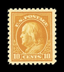 661 nhu 433 image#433, 10c Orange yellow, brilliant color, nicely centered within large margins, o.g., n.h., choice very fine; 2004 PSE certificate for a block of four, this being the bottom right stamp, and a 2006 PSE certificate for the single (VF-XF 85; SMQ $205.00). (Image) $115.00