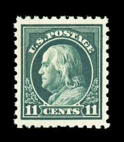 663 nhu 434 image#434, 11c Dark green, a superlative mint single, being flawlessly centered amid particularly large margins, deep luxuriant color and a prooflike impression on fresh white paper, immaculate o.g., n.h., a superb gem for the perfectionist; 2006 PSE certificate (Superb 98; SMQ $1,750.00); this is the sole never hinged example to grade 98, with just one grading slightly higher (98J). (Image) $60.00