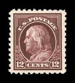 667 nhu 435 image#435, 12c Claret brown, exceedingly well centered, deep intense color and an especially strong impression on fresh white paper, o.g., n.h., extremely fine; 2007 PSE certificate (XF-Superb 95; SMQ $800.00). (Image) $65.00