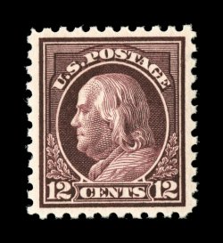 666 nhu 435 image#435, 12c Claret brown, a highly desirable mint single, exceedingly well centered within uncharacteristically large margins, beautiful rich color and a highly detailed impression, fresh clean o.g., n.h., an extremely fine gem; 2007 PSE certificate (XF-Superb 95; SMQ $800.00). (Image) $65.00