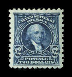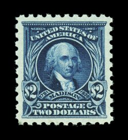 721 nhu 479 image#479, $2.00 Dark blue, a highly desirable mint example that is precisely centered amid uncommonly large margins, plus its color is deep and luxuriant, while its impression is razor sharp on fresh paper, flawless o.g., n.h., an extremely fine gem; 2004 PSE certificate (XF-Superb 95; SMQ $2,450.00). (Image) $550.00