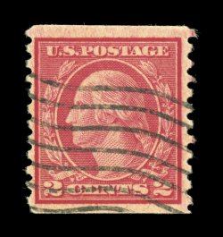 733 O 491 image#491, 2c Carmine coil, Ty. II, perf. 10 vert., scarce used single, deeply rich color and impression, nicely centered, wavy machine cancel, very fine; 1996 PF certificate. (Image) $750.00
