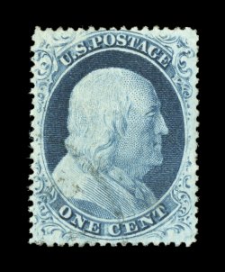 66 Ou 23 image#23, 1c Blue, Ty. IV, exceedingly well centered, deep rich color and a strong detailed impression, very light and unobtrusive town cancel, recent certificate mentions a horizontal wrinkle at left center which is quite trivial, otherwise extremely fine; clear 2000 PF certificate and a 2005 PSE certificate (VG 50; SMQ $230.00). (Image) $800.00