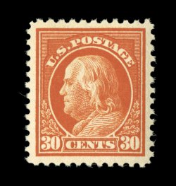 783 nhu 516 image#516, 30c Orange red, exceptionally well centered within large margins, deep vibrant color and a crisp detailed impression, o.g., n.h., extremely fine; 2006 PSE certificate (XF 90; SMQ $240.00). (Image) $85.00
