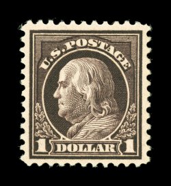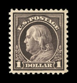 790 nhu 518 image#518, $1.00 Violet brown, lovely mint single, wonderfully fresh with especially rich color, crisp prooflike impression, beautifully centered within large balanced margins, immaculate o.g., n.h., extremely fine gem; 1997 PF certificate and 2005 PSE certificate (the latter graded XF-Superb 95; SMQ $1,000.00). (Image) $120.00